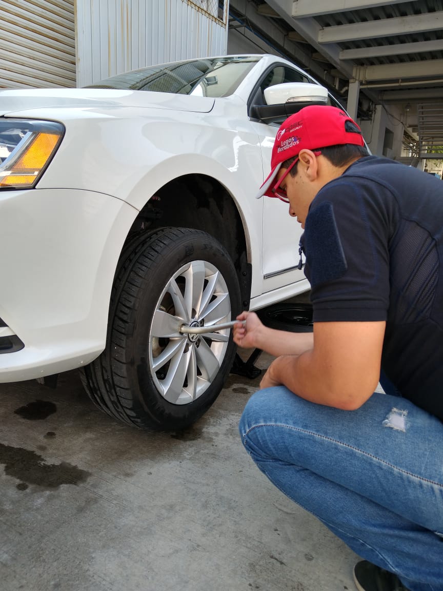 11. Aprieta los birlos: recuerda que para apretarlos, debes colocar la llave en los birlos, pisarla y hacer palanca con tus manos sobre la salpicadera delantera.